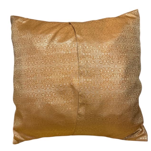 Gold Sari Pillow Cover: Indian Repurposed Fabric, 24x24”