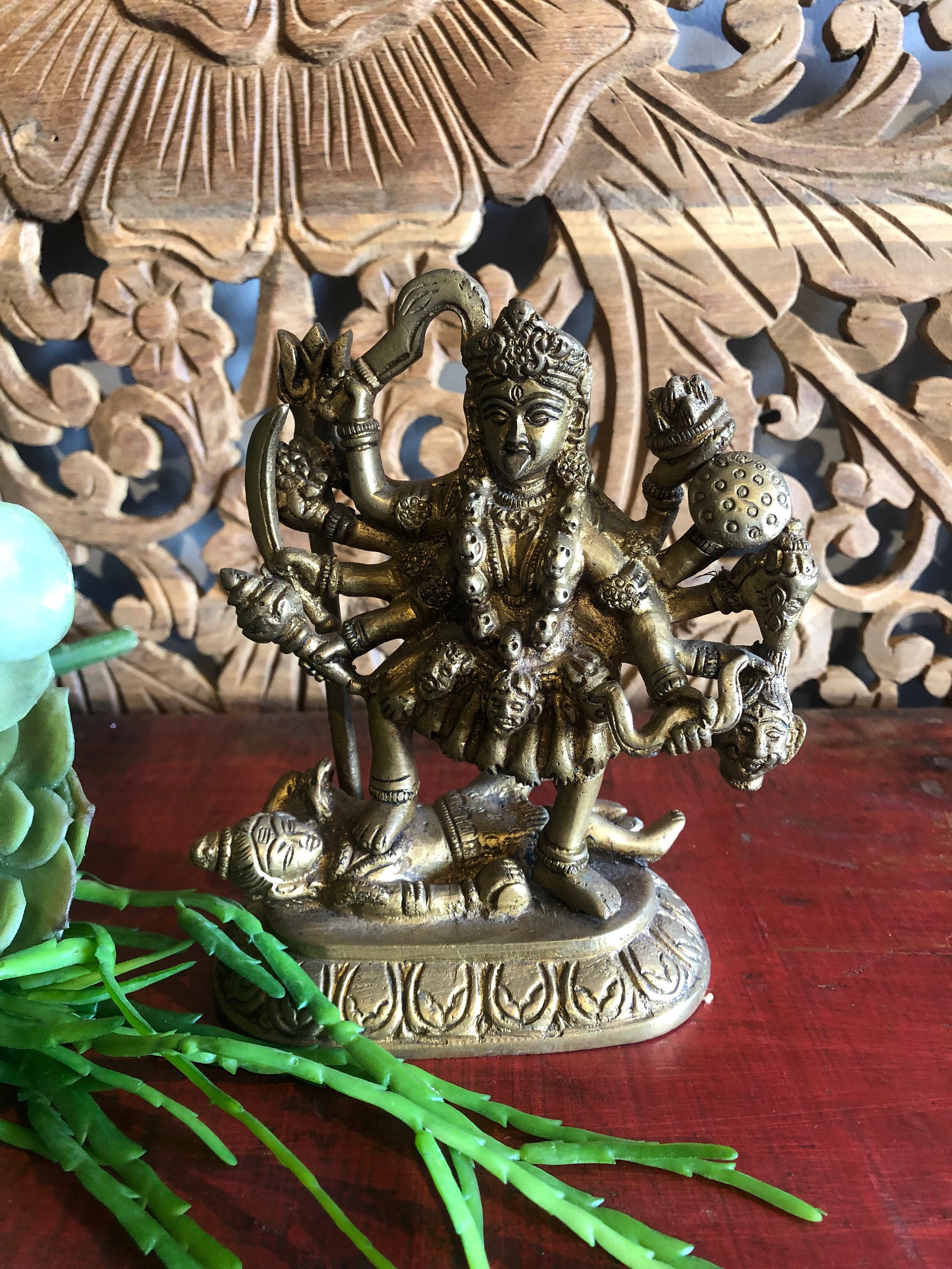 Vintage Brass Kali Statue, Kali Spiritual Goddess, worshipped goddess, crafted Brass Sculpture