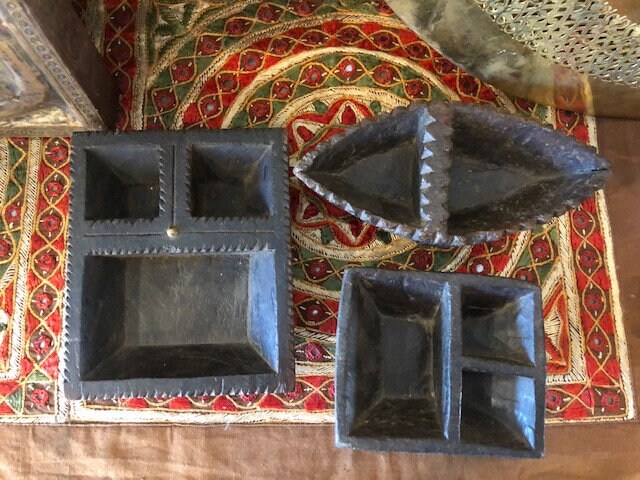 Vintage Small Wooden Indian Spice holder, decorative old holder, salt and pepper holder, set of 3